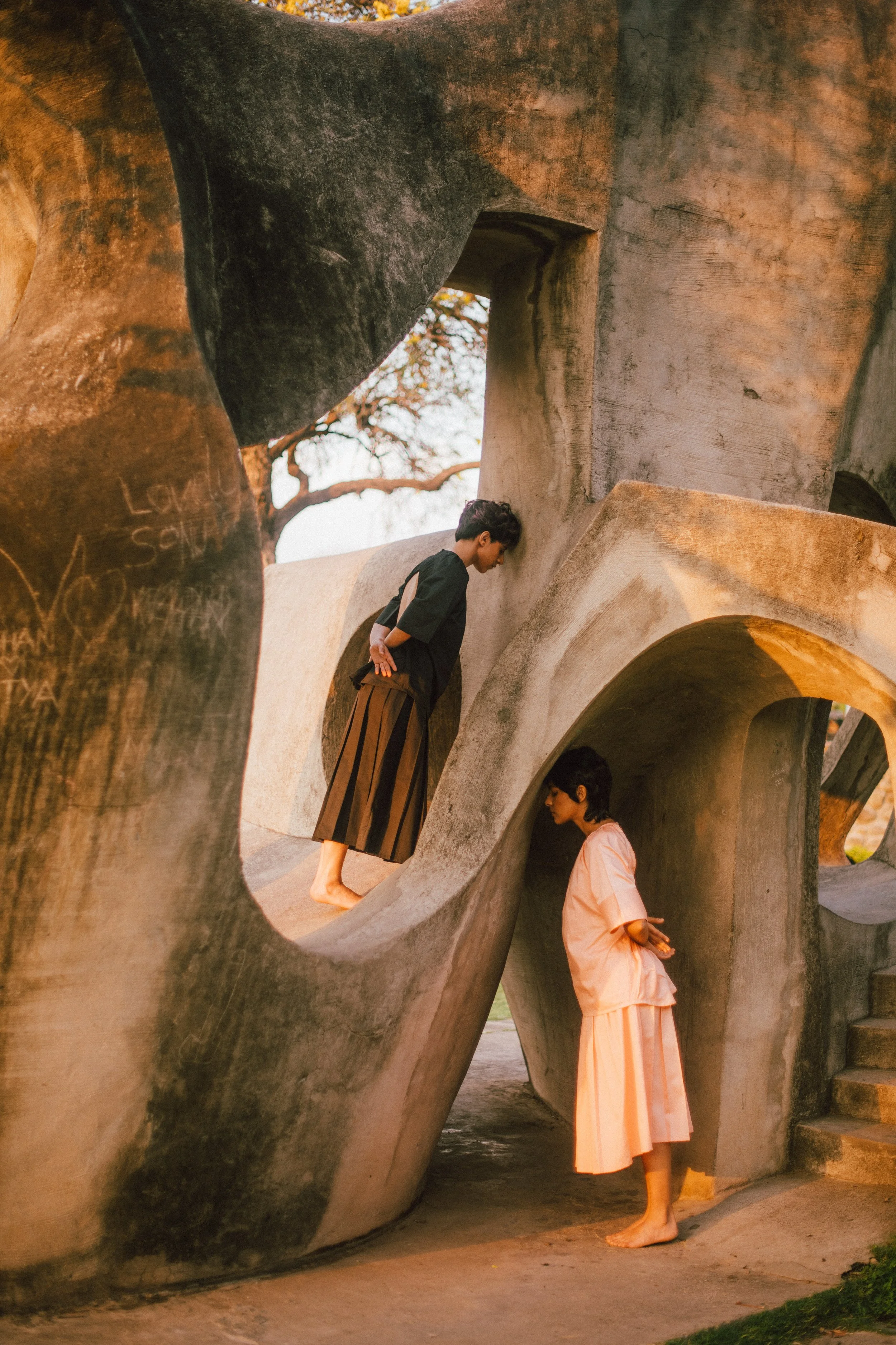 Chandigarh was India’s first planned city, post independence. It was a symbol of India’s freedom and a strong expression of its faith in the future - themes that resonate with the ethos of the brand. The city was designed as a collaborative project by the pioneer of modern architecture - Le Corbusier and a team of Indian architects. They achieved fluid forms using the most common building material, concrete, and we translated those shapes to garments using only cotton throughout the collection, the most widely used fabric.